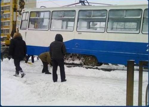 После 26 января, когда за одну ночь город буквально завалило снегом, график уборки изменили, силы бросили на вызволение из снежного плена трамваев, на расчистку главных транспортных магистралей. Снег был такой, что не помогли и щетки, как обычно выпущенные перед трамваями. Они просто попали в общий затор. Выручили вышедшие на маршруты автобусы.
