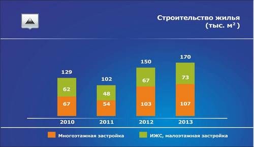 stroitelstvo-smГлава назвал еще один индикатор общего состояния дел — объем жилищного строительства. Оно выросло в полтора раза. Введено более 150 тысяч квадратных метров жилья, на 2013 год планируется ввести 170 тысяч метров, причём треть будет составлять жильё экономкласса.