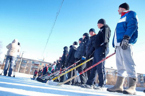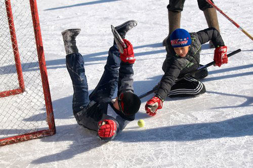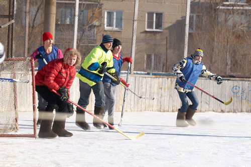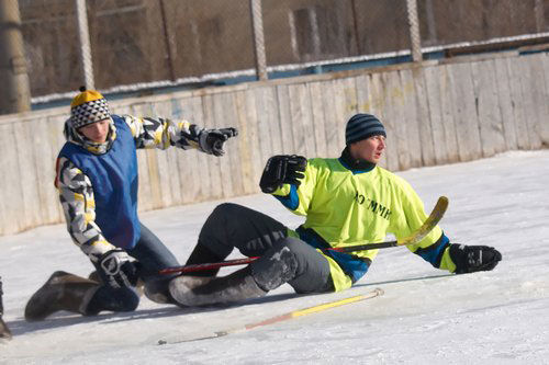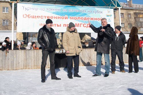 В воскресенье на льду стадиона «Малыш» прошел первый турнир «Хоккей с мячом на валенках», организованный по инициативе Общественной молодежной палаты при МГСД.
