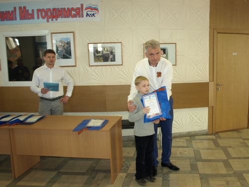 F-konkurs1Всего на конкурс было представлено более 50 работ. Фотографии, фотоколлажи с лицами родных людей, принёсших долгожданную победу. Работы интересные, очень проникновенные, творческие. И организаторы, местное отделение партии «Единая Россия», решили не просто дипломами отметить победителей, а оставить яркую память. Каждый из награждённых получил именную футболку, на которую нанесли не только его имя и фамилию, но и изображение собственной победившей работы.