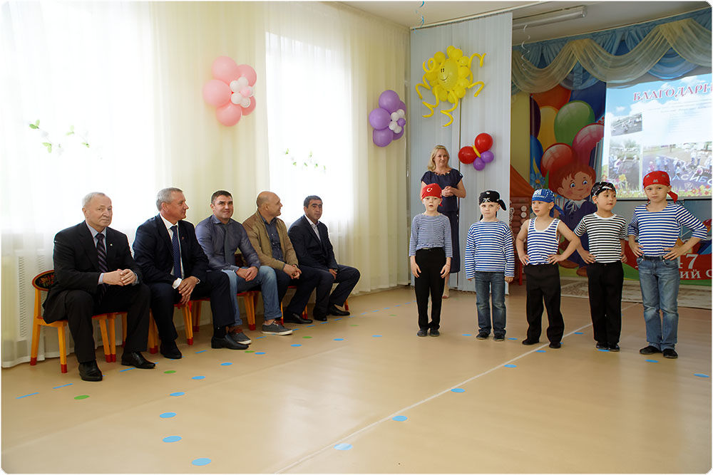 В завершение небольшого концерта Вячеслав Бобылев высказал общее мнение: «Мы не могли не отозваться на просьбы руководства детского сада о помощи. Видели, конечно, что внутри у вас все красиво, свежо, современно, что вы стремитесь к порядку! Поэтому подумали, изыскали средства, запланировали и сделали снаружи так же красиво, как и в помещениях. Скажу искренне, что нам самим очень приятно сегодня участвовать в этом мероприятии!»