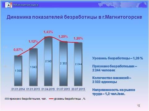 Рис2По состоянию на 20 июля уровень безработицы составлял 1,26%. На учете в Центре занятости населения состояло 2770 человек, из них признано безработными 2244 человека. Напряженность на рынке труда - 1,2 незанятых граждан на вакансию. Количество вакансий - 2322 единицы. Пик роста безработицы городом пройден в апреле, ситуация на рынке труда постепенно стабилизируется. Влияние экономического кризиса сказалось на структуре занятости. Растет количество обратившихся за трудоустройством мужчин с высокой квалификацией и опытом работы. На 37% увеличилось количество обращений за трудоустройством граждан в возрасте от 30 до 54 лет.