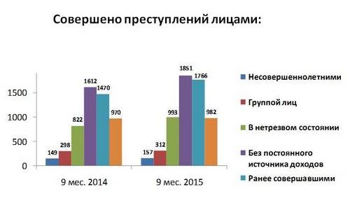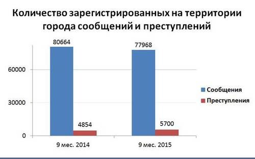 Отмечен рост числа зарегистрированных особо тяжких преступлений на 34%, до 395 преступлений. За 9 месяцев совершено 34 убийства. Результативность раскрытия составила 97%. Увеличилось количество выявленных фактов незаконного оборота наркотиков, а также противоправных деяний экономической направленности с тяжкими и особо тяжкими составами.