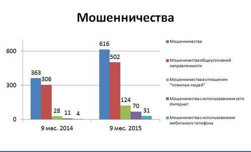 Все большее распространение получают новые виды мошеннических действий с использованием сети Интернет, число которых возросло более чем в 6 раз, эффективность их раскрытия возросла до 29%. Отмечен рост числа мошенничеств с использованием мобильных средств связи.