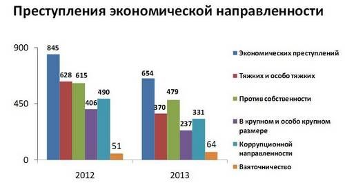 Правоохранительными органами выявлено 331 преступление коррупционной направленности, из них 114 должностных преступлений, в том числе 64 - по факту взяточничества. Выявлено 41 должностное лицо, совершившее коррупционные преступления, к уголовной ответственности привлечено 39 человек. Окончено и направлено в суд 529 уголовных дел экономической направленности, по которым привлечен 141 человек.