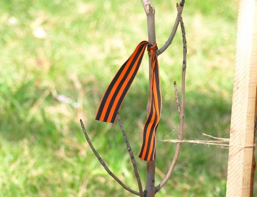 «Очень важно, чтобы саженцы, высаженные накануне 70-летия Великой Победы, сохранились и выросли. Пусть своеобразным оберегом для них станет эта лента, - отметил спикер. - Может тогда у вандалов не поднимется рука сломать или выкопать молодое деревце».