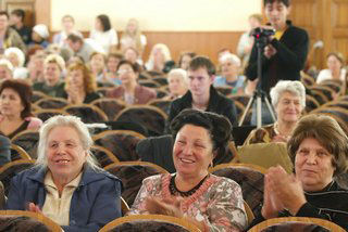 021009-5-smТоржественное и вместе с тем трогательное мероприятие, посвящённое празднику пожилых людей, прошло в Магнитогорском государственном техническом университете. Большой зал, вмещающий 500 человек, был полон людьми, заслуженными и известными в нашем городе. Собравшихся приветствовали ректор вуза Валерий Колокольцев, председатель МГСД Александр Морозов, заместитель главы города Владлена Прохоренко, глава Ленинского района Вадим Чуприн.