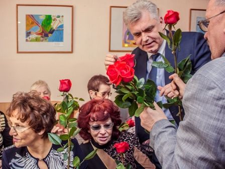 В празднично оформленном зале собрались ветераны труда, активисты ТОС, жительницы близлежащих домов. Поздравить их с охапкой роз пришёл председатель городского Собрания Александр Морозов.