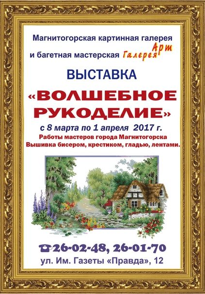 выставка 11Во вторник, 7 марта картинная галерея и багетная мастерская «Арт-галерея» откроет четвертую ежегодную выставку творческих работ мастериц «Волшебное рукоделие».