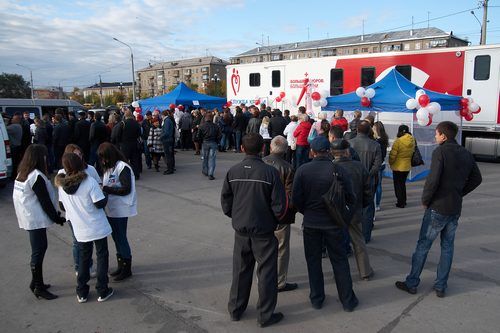 По 400 миллилитров крови в этот день смогли сдать не все желающие. Кровь сначала нужно проверить, поэтому к стоящей радом машине скорой помощи на сдачу анализа очередь была не меньше. Через несколько дней, когда результат будет готов, будущие доноры придут на городскую станцию переливания крови и сдадут кровь в стационарных условиях. Тем, чьи данные уже есть в базе станции, можно было сдавать кровь сразу.