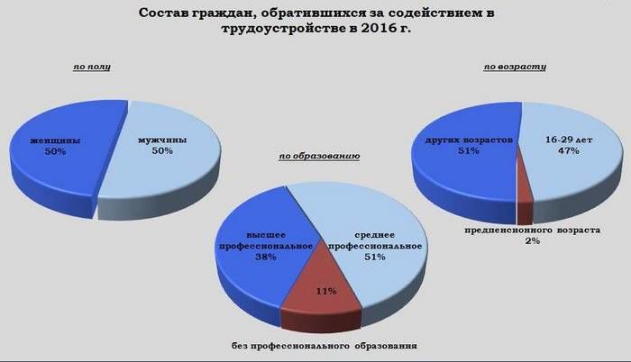 Вакансии3По данным середины июня, на учете в центре занятости состоят 3175 человек, 2582 признаны безработными. Из них 47% - молодёжь в возрасте 16-29 лет, 2% - граждане предпенсионного возраста. По образованию: 51% - со средним профессиональным образованием, 38% - с высшим образованием.