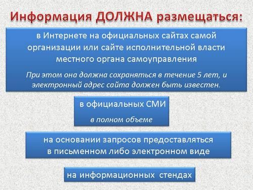 в Интернете на официальных сайтах самой организации или сайте исполнительной власти местного органа самоуправления (при этом она должна сохраняться в течение 5 лет, и электронный адрес сайта должен быть известен).
