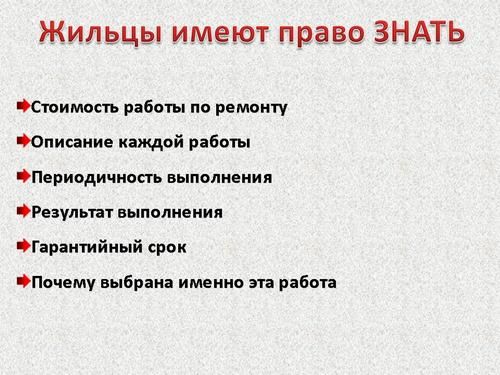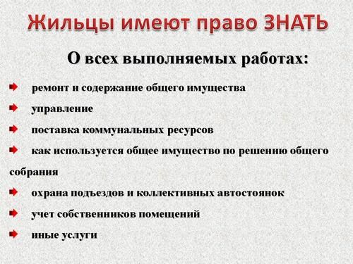 Информация о выполняемых работах по содержанию и ремонту общего имущества в многоквартирном доме, должна раскрывать следующие сведения:
