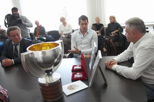 malkin_3Belikhov-smВручая награды, спикер горсобрания Александр Морозов и заместитель главы города Владимир Ушаков отметили огромный вклад ребят в то, чтобы имя Магнитки звучало гордо на мировом уровне. Как будто в подтверждение этому еще одним участником встречи был Кубок мира по хоккею 2012 года.