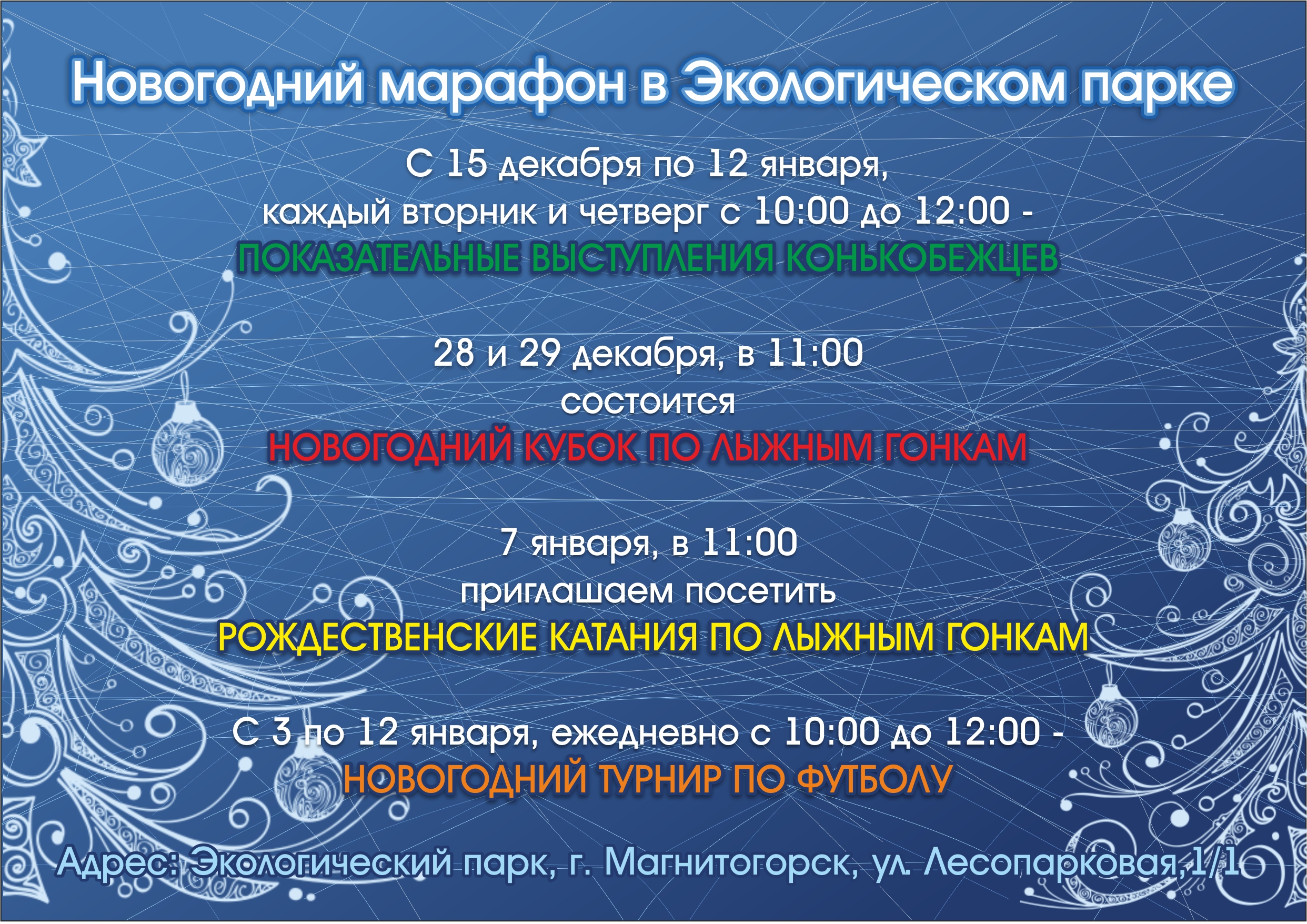 В рамках реализации городского проекта развития и благоустройства экологического парка запускается уникальный для Магнитогорска формат новогоднего мероприятия – резиденция Деда Мороза в Экологическом парке.