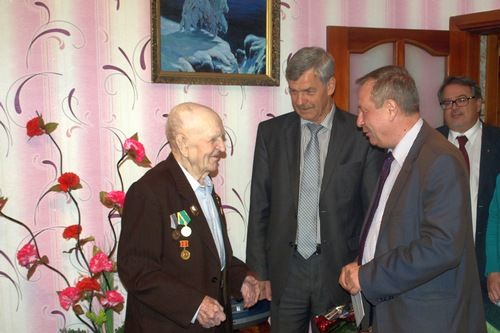 В дом на улице Маяковского приветствовать юбиляра пришли заместитель главы города Вадим Чуприн, глава администрации Орджоникидзевского района Пётр Гесс и другие. По поручению председателя горсобрания Александра Морозова, который сегодня вне города, поздравительный адрес и подарок Владимиру Фёдоровичу вручил помощник спикера Сергей Топорков. Вместе с сердечными пожеланиями здоровья и столетнего юбилея Вадим Чуприн передал виновнику торжества поздравительное письмо президента России Владимира Путина.