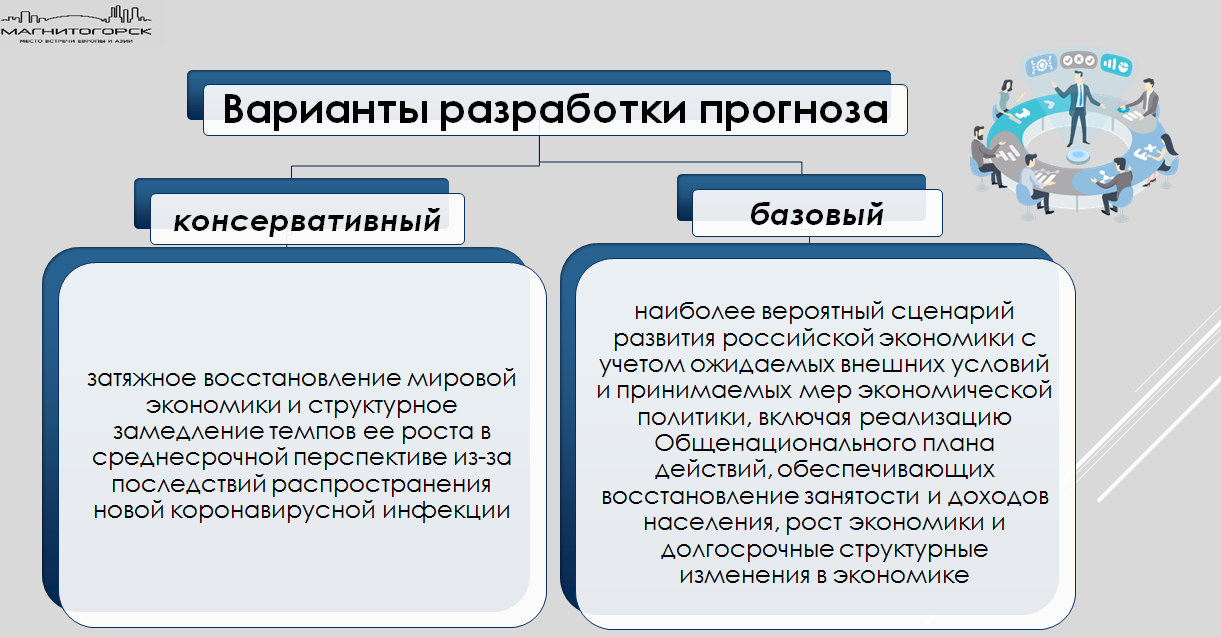 Прогноз является одним из обязательных для стратегического планирования и основой для формирования проекта бюджета города на ближайшие три года. Для Магнитогорска за основу был принят базовый вариант прогноза.