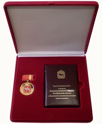Сегодня на заседании Собрания перед обсуждением вопросов повестки Александр Морозов вручил медаль председателю депутатской комиссии по законодательству и местному самоуправлению Любови Гампер.