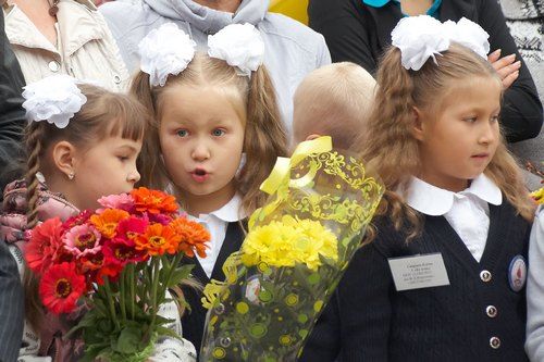 День знаний в 51-ой школе начался с гимна города. Когда старшеклассники исполняли его, первоклашки смотрели на них, раскрыв рты.