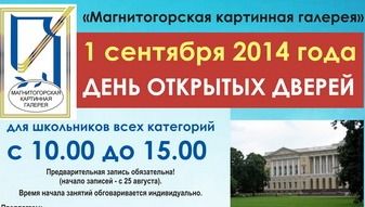 Магнитогорская картинная галерея объявляет День открытых дверей для учащихся школ. Он пройдет 1 сентября.