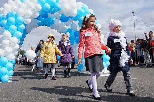В каждом учебном заведении сегодняшний день начался с торжественной линейки. А затем первоклассники прошли ярким парадом по главной площади города.