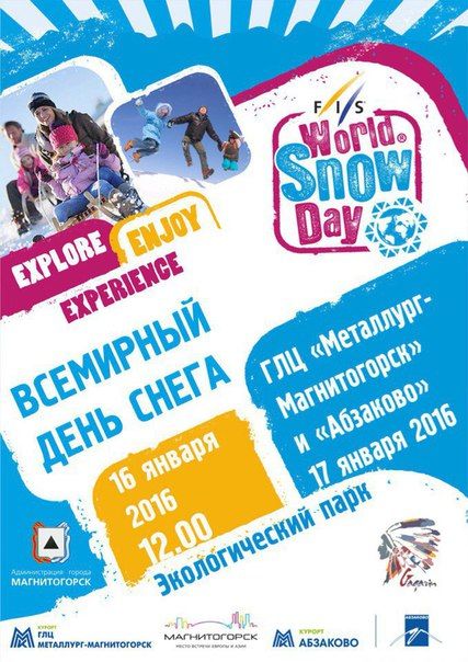 В субботу, 16 января в Экологическом парке с 12 до 16 часов состоится празднование Всемирного дня снега. А 17 января праздник продолжится на территории ГЛЦ «Металлург-Магнитогорск» и ГЛЦ «Абзаково».