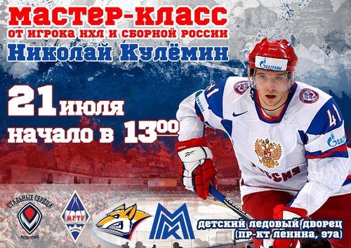 Для детско-юношеской хоккейной школы «Металлург» 21 июля на базе Дворца спорта им. И. Х. Ромазана (проспект Ленина, д. 97а) состоится мастер-класс от воспитанника хоккейной школы «Металлург Магнитогорск», игрока национальной хоккейной лиги и сборной России Николая Кулемина.