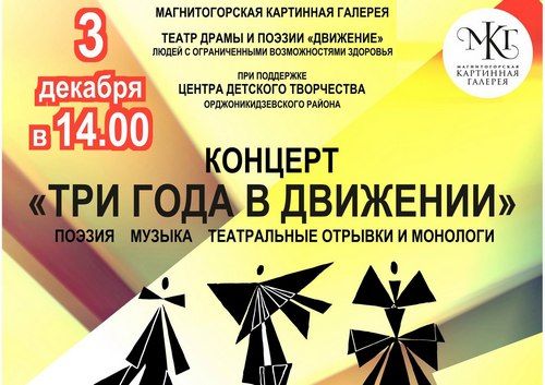 Завтра, 3 декабря в 14.00 картинная галерея и театр драмы и поэзии «Движение» людей с ограниченными возможностями здоровья представят новое художественно-музыкальное мероприятие «Три года в движении».