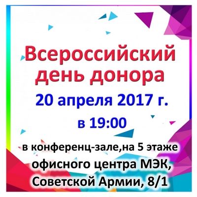Магнитогорцев приглашают посетить праздник, посвященный Всероссийскому дню донора, который состоится 20 апреля в 19:00 в конференц-зале офисного центра Магнитогорской энергетической компании.