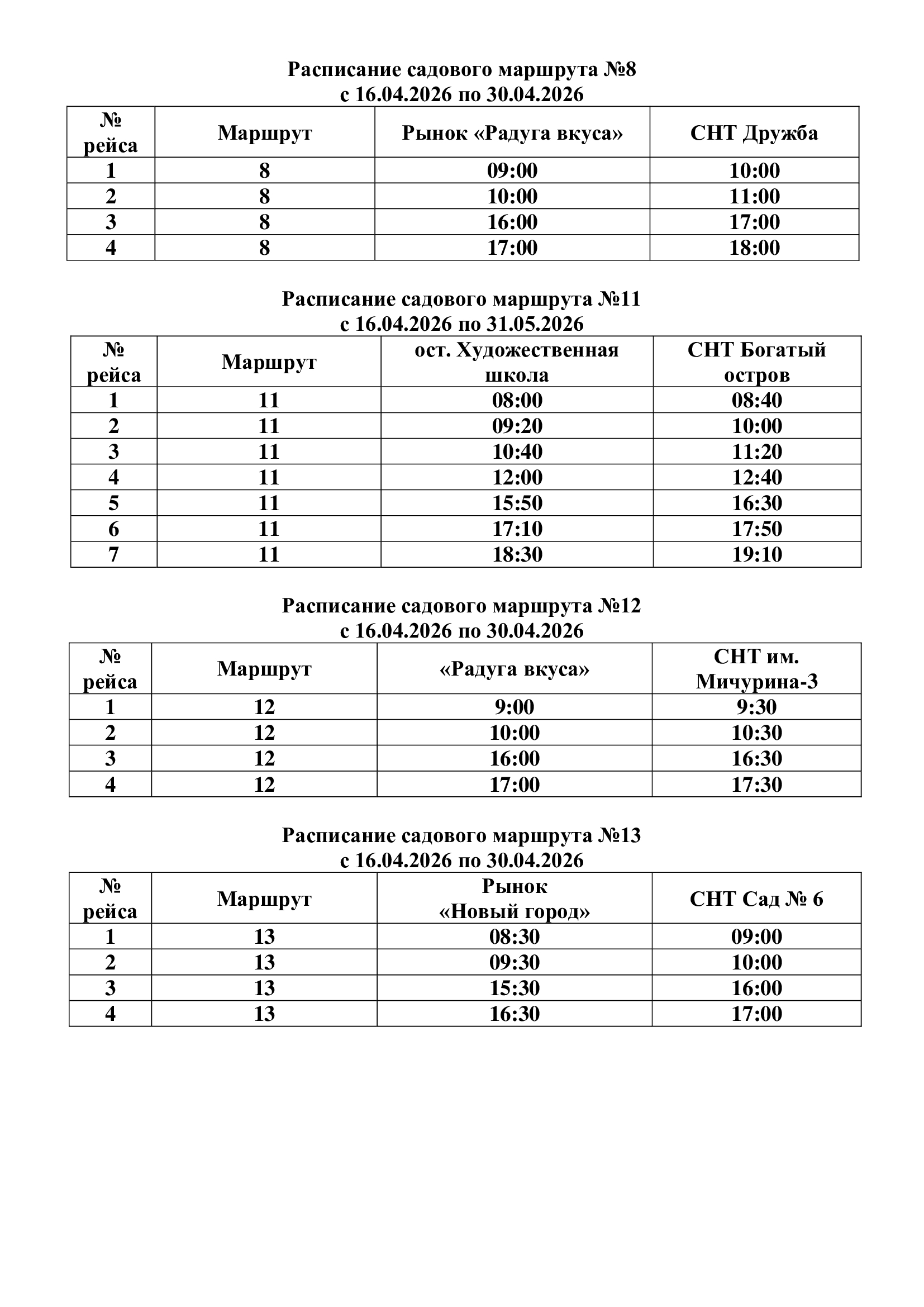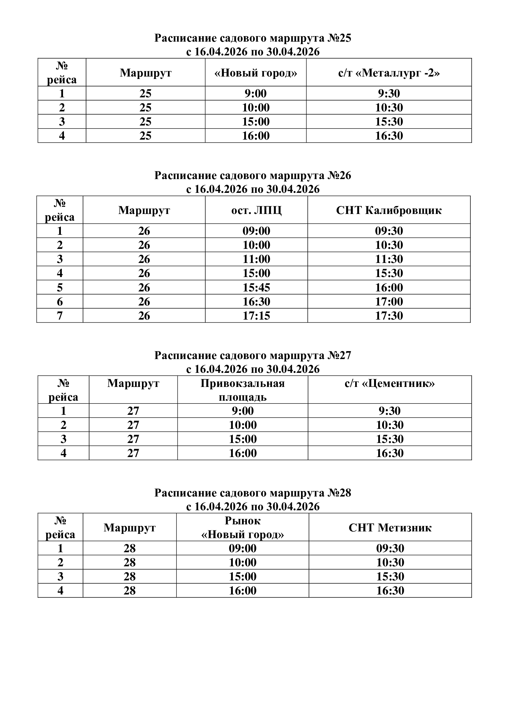 Городские садовые автобусы начнут курсировать в Магнитогорске с 16 апреля. Движение будет организовано ежедневно по 11 маршрутам. Отправление будет осуществляться от остановок: «рынок «Радуга вкуса», «рынок «Новый город», «Художественная школа», «Полевая», «площадь Привокзальная», «ЛПЦ».