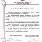 Глава города Сергей Бердников и председатель городского Собрания Александр Морозов направили юбиляру поздравительный адрес с выражением искренней признательности и пожеланиями творческих успехов.