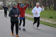Так что Олег Хапов знает Магнитогорск, и, что немаловажно, давно занимается спортом, участвовал даже в областных чемпионатах. Он с удовольствием размялся и пробежался вместе со всеми по дорожкам весеннего парка.